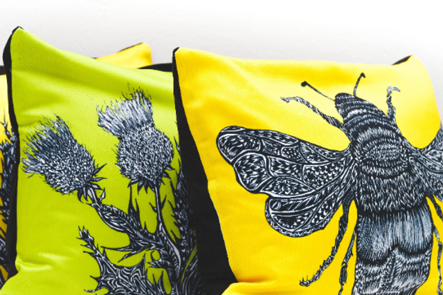 Bee and Thistle Velvet Cushions.