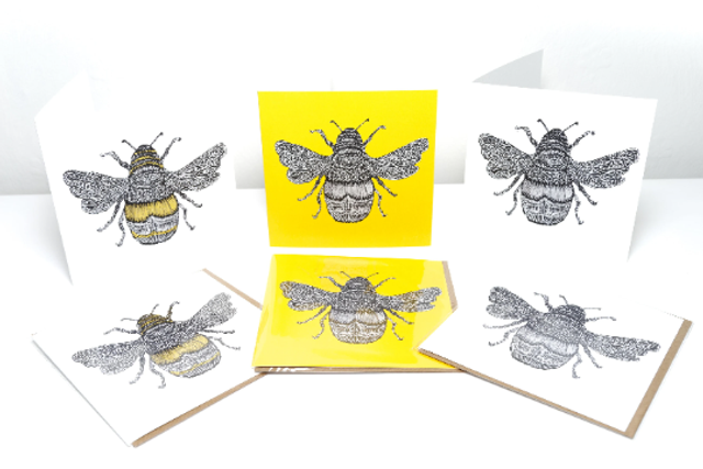 Hand-drawn and designed by myself and reprinted in the UK by professional Giclée printers to 150mm x 15.0mm 324gsm textured matt blank board card from fully sustainable forests.
