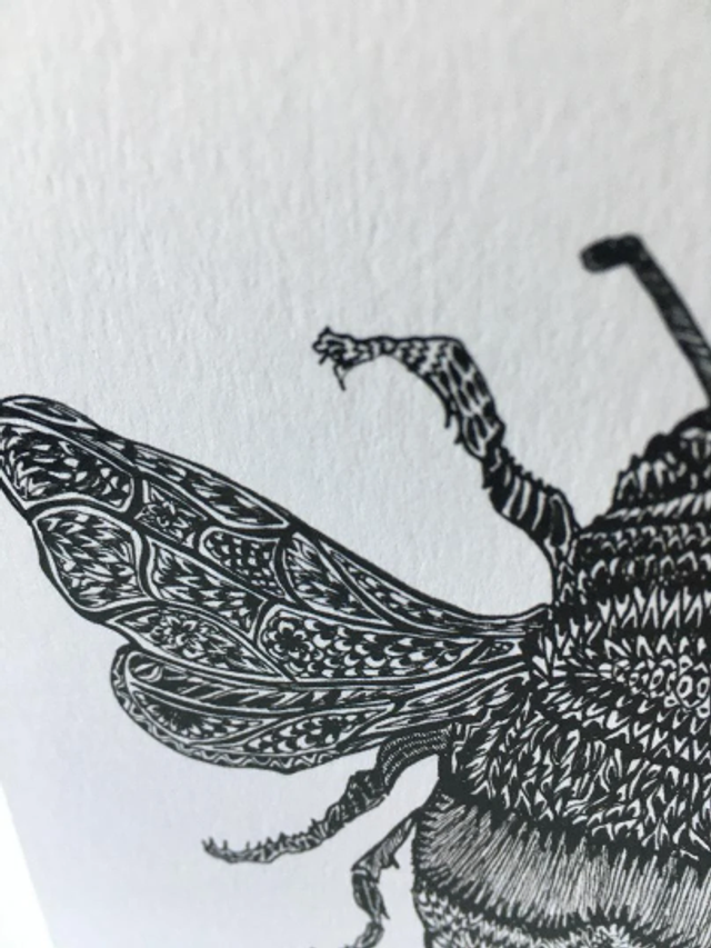 Bee Ink sketched Greeting Card in Monochrome