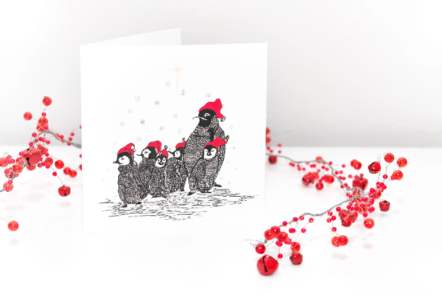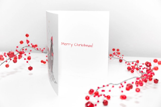 Message inside to read Merry Christmas! in red font colour. Hand-sketched by myself with love and reprinted to 150mm x 150mm 324gsm textured matt blank board card. Printed in the UK from fully sustainable forests by professional Giclee printers.