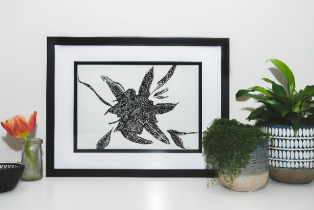 Rhododendron flower sketched and mounted in a soft white double-sided board frame all ready to add to a frame of your choice. inspired by a visit to the National trust’s Sheringham Park in North Norfolk from May onwards the Rhododendrons are a spectacular sight and the park is a wonderful place to walk.